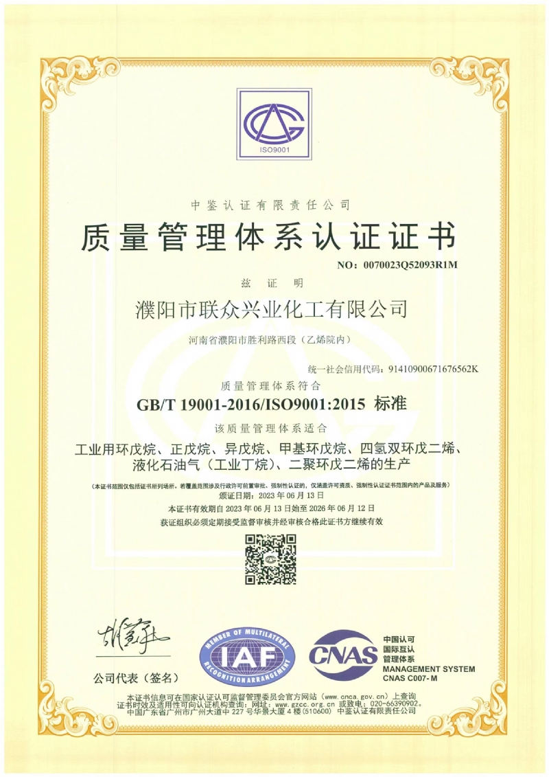 質(zhì)量管理體系認(rèn)證證書